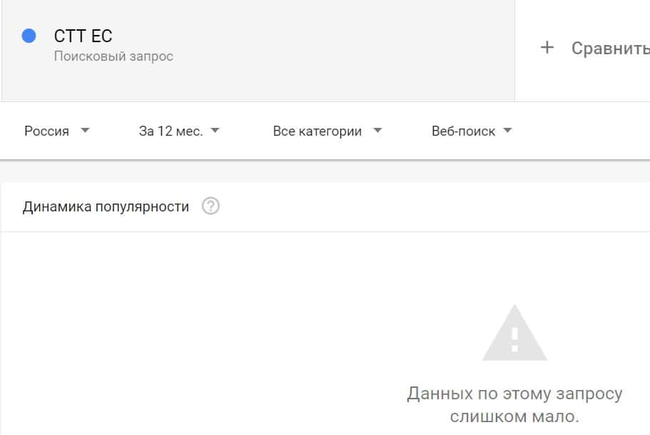 Пользователи вбивали название компании "СТТ ЕС" с пробелом в поисковик Гугл очень редко.