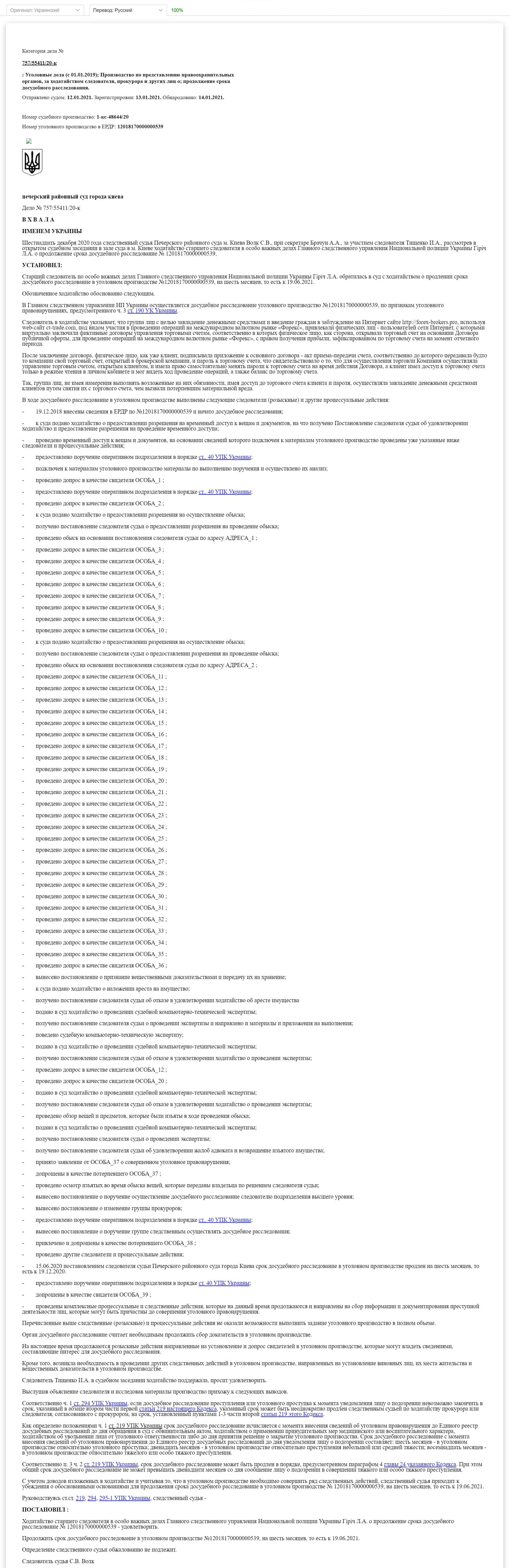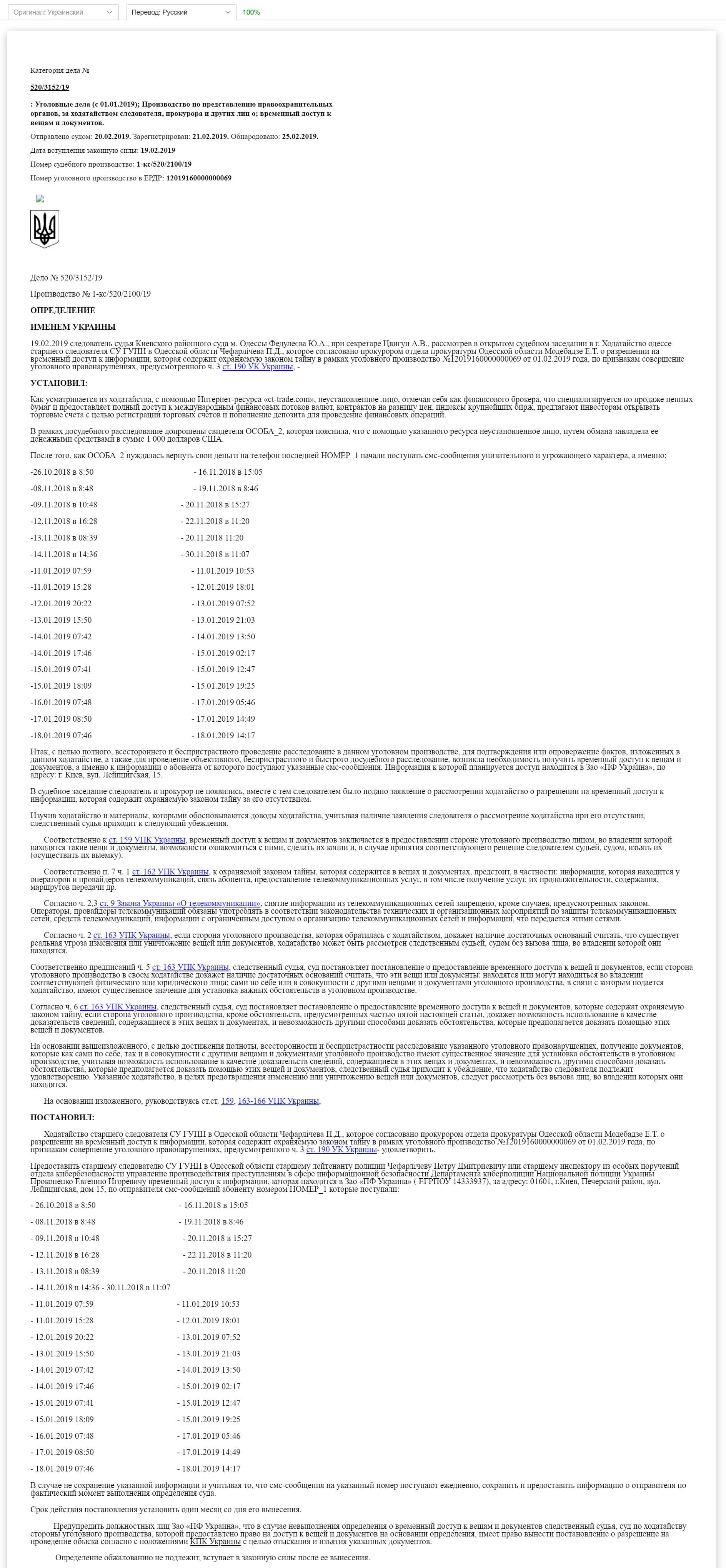 На публикации ниже представлен перевод судебного производства: 1-кс/520/2100/19 на русский язык.