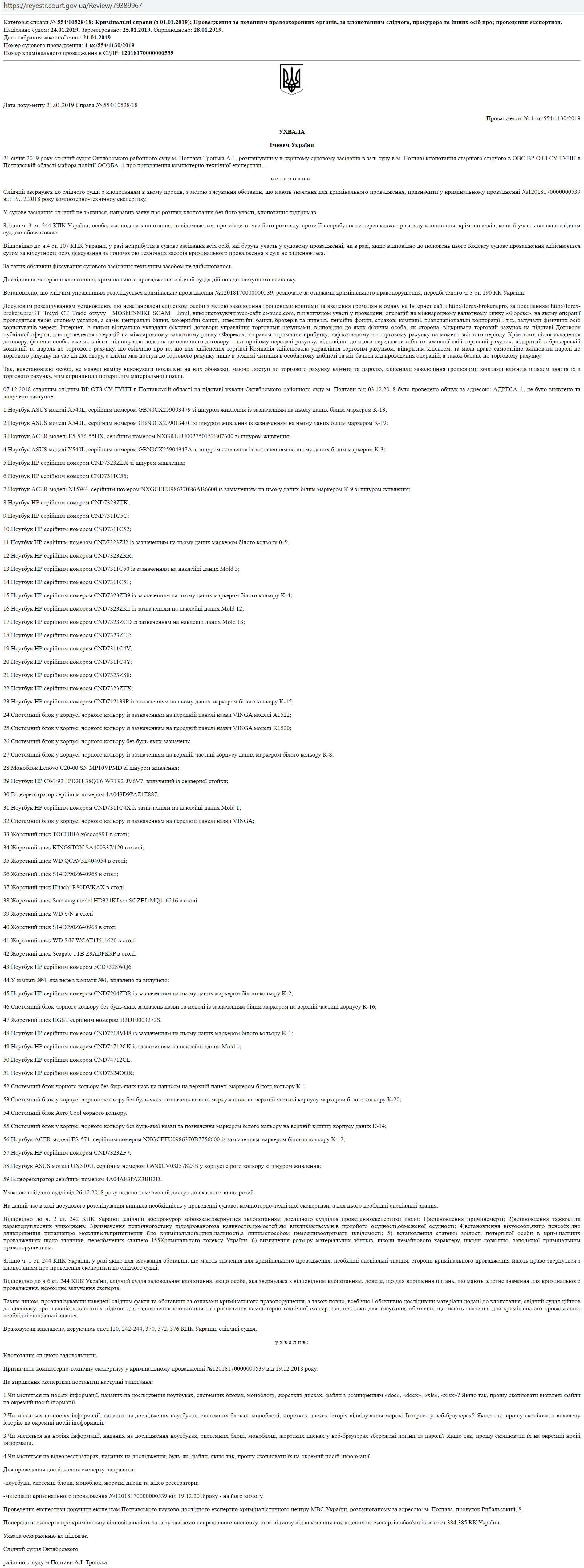 Ниже опубликовано дело № 554/10528/18 за 02.01.2019.