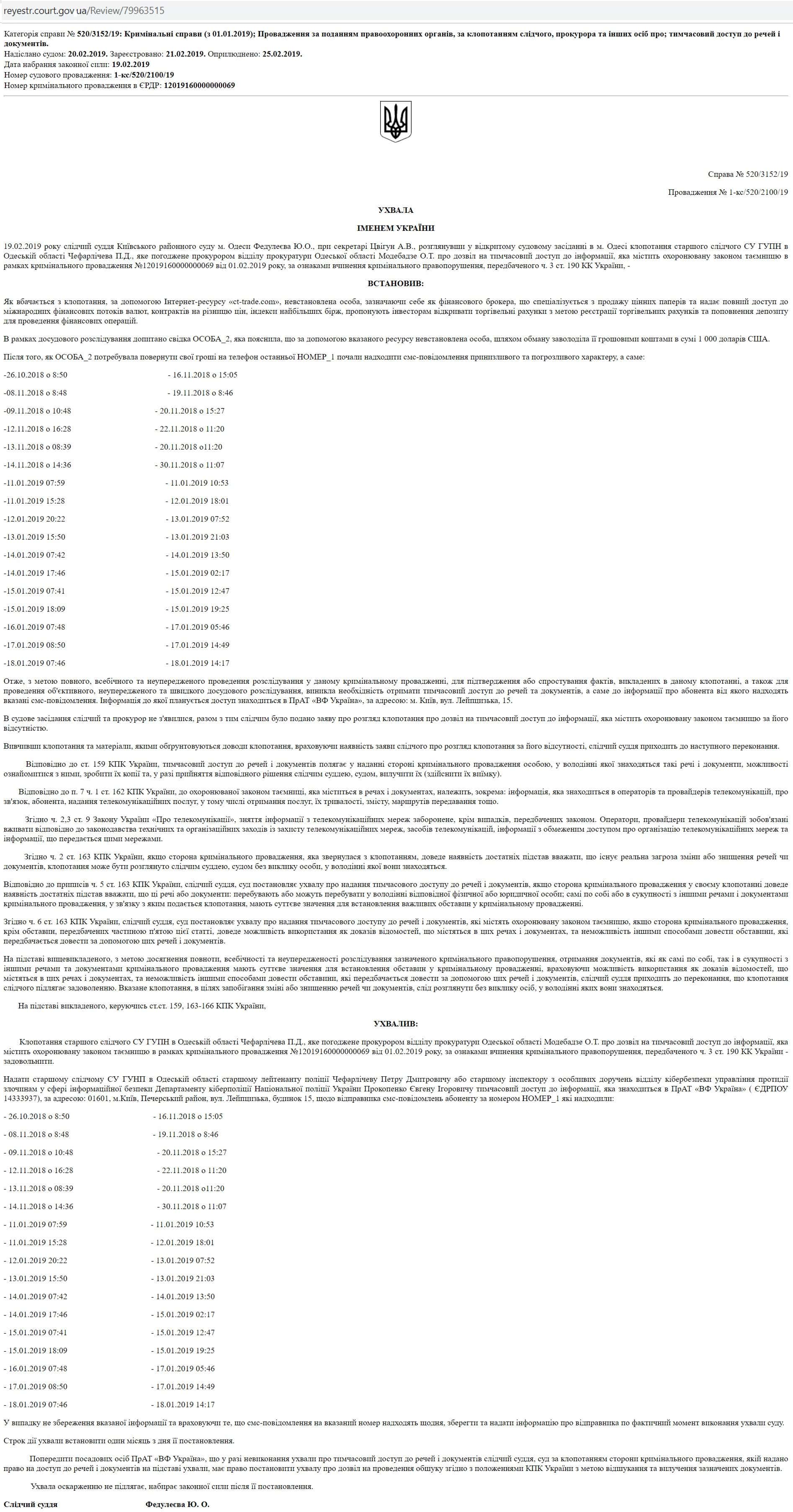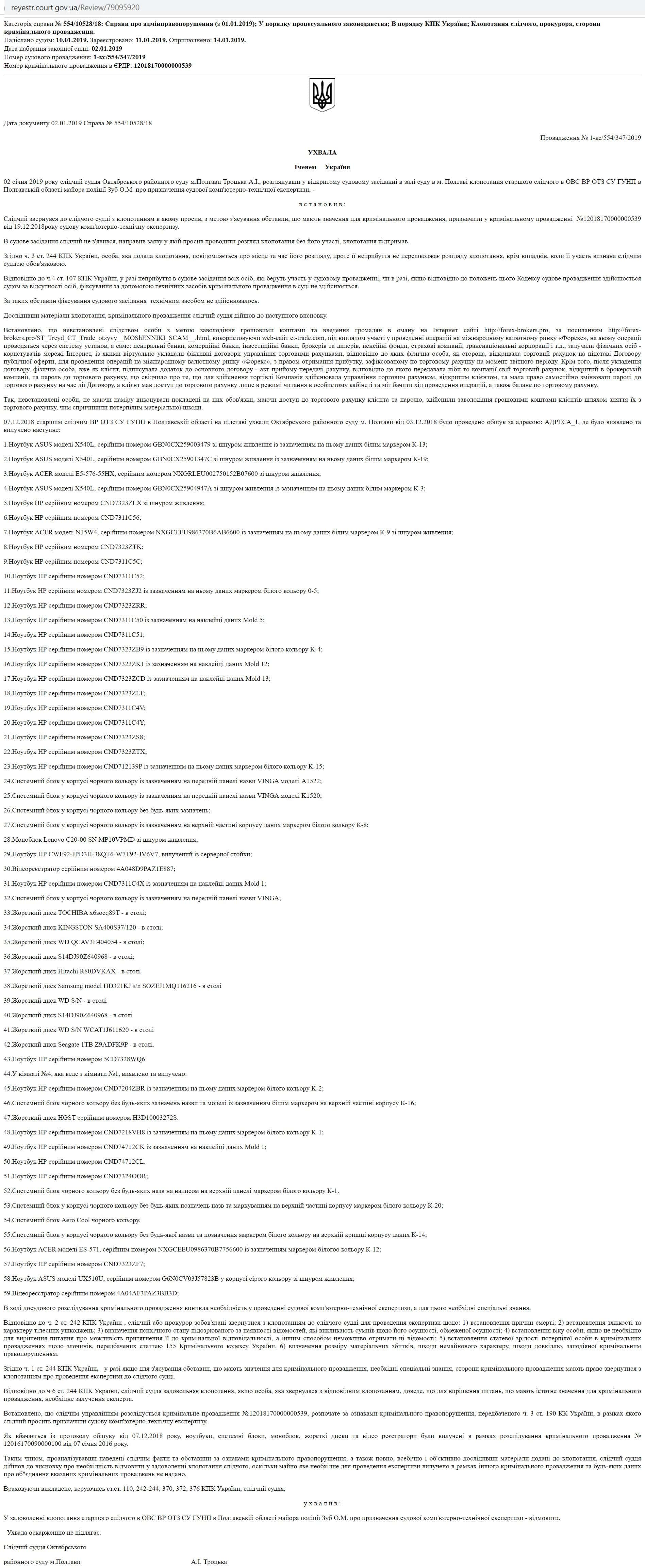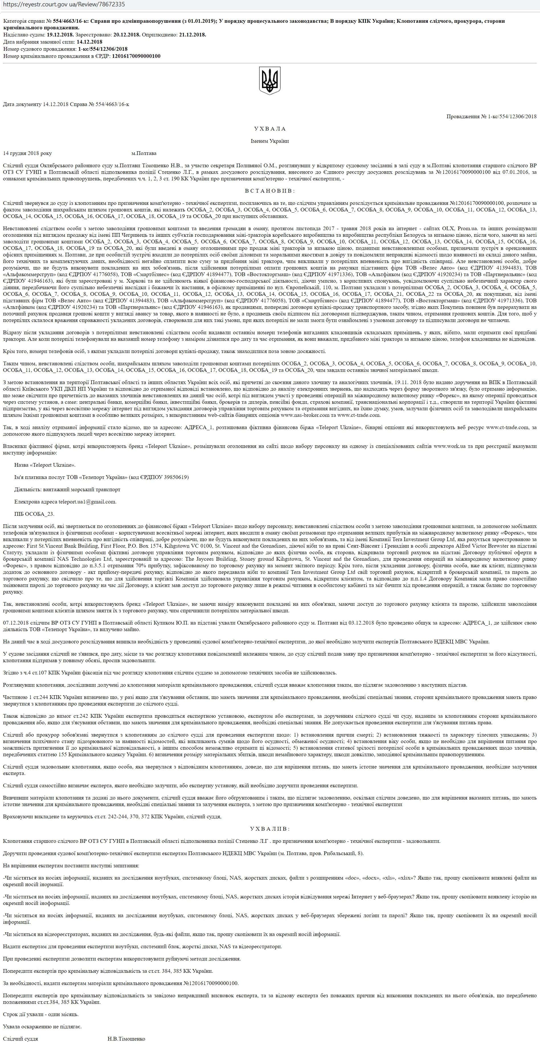 Судебное решение № 554/10528/18 от 02.01.2019 (Полтава) фигурирует forex-brokers.pro
