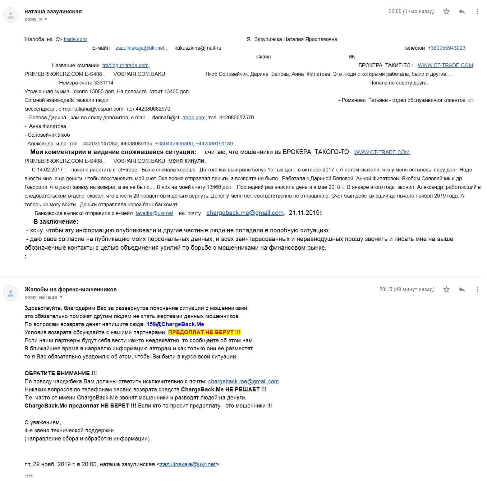 Это письмо пришло от человека, который раскрыл шарагу CT-Trade
