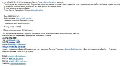Вот кого мы должны благодарить за создание статьи о мошенническом брокере CT-Trade