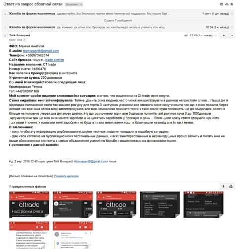 - Обман на 250 долларов от брокера-мошенника CT-Trade