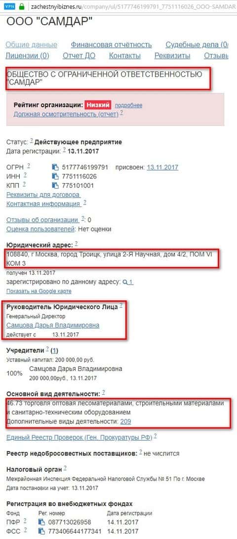 Мы подумали, вот как хорошо, брокер даже офис оформил, там где работает, пусть даже без лицензии и под другим названием. Но дальше стали копаться и случился один забавный казус. Жулье форекс-брокера наверное не заметило или не проверило чем вообще занимается этот ООО "САМДАР". Выяснилось что данная компания занимается торговлей оптовыми лесоматериалами, строительными материалами и санитарно-техническим оборудованием. И где здесь Форекс или хотя бы финансы??? Мошенники настолько глупы, что даже не поняли что натворили.