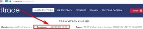 Мошенническая организация CT-Trade занимается разводом своих клиентов и потенциальных клиентов на деньги путем привлечения на рынок Форекс и для этого использует телефон. Если вам по какой-то причине позвонил номер +442080891189, то не паникуйте, просто сбросьте звонок и отправьте его в черный список контактов. Это будет самое правильное решение в вашей жизни. В случае, когда вы этого не сделаете, вас могут загипнотизировать и переубедить в ином мнении о форексе и тогда плакали все ваши сбережения!