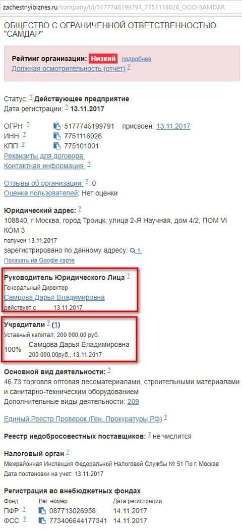 Псевдоброкер СТ-Трейд имеет подставную компанию в Москве под названием ООО "САМДАР"