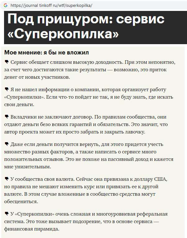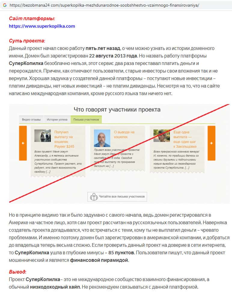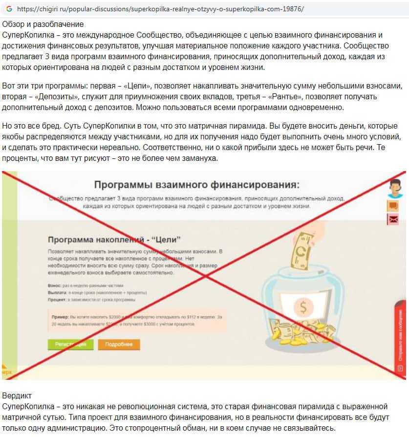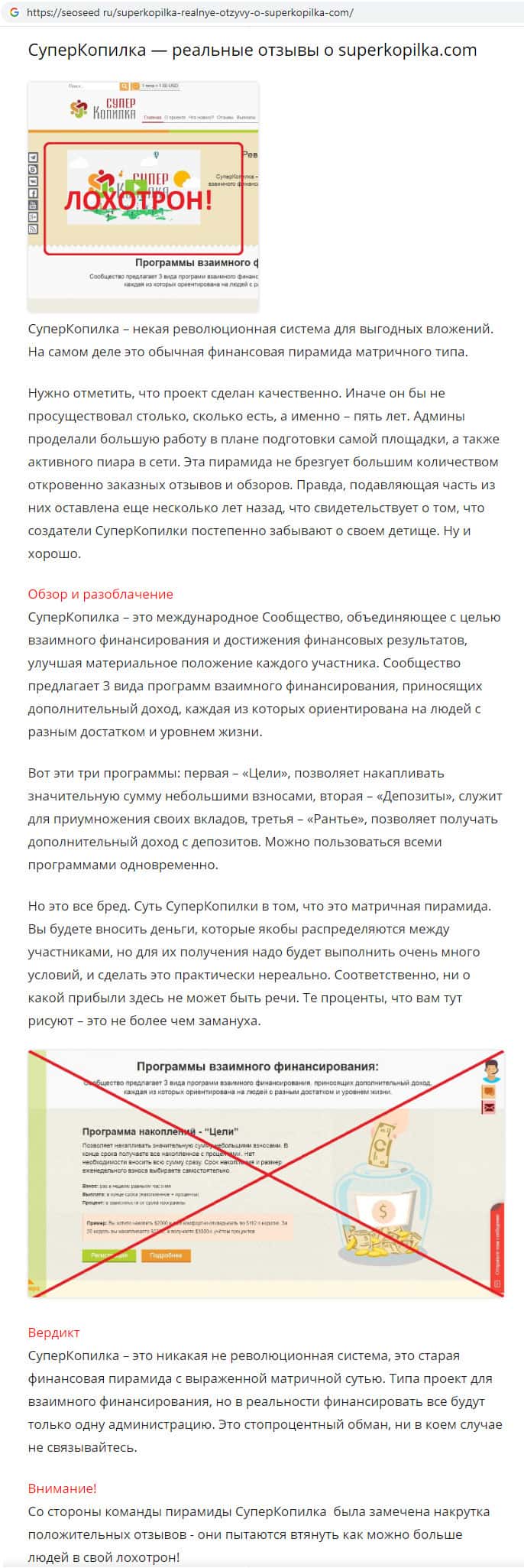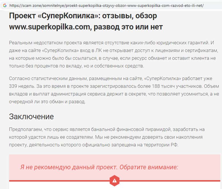 - Аферисты Супер Копилка опубликовывают статьи о своей скам-организации