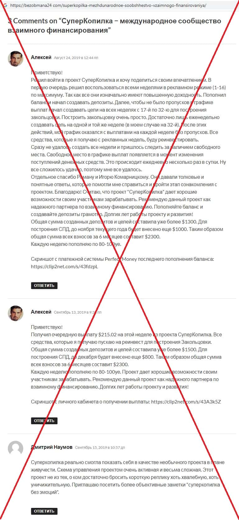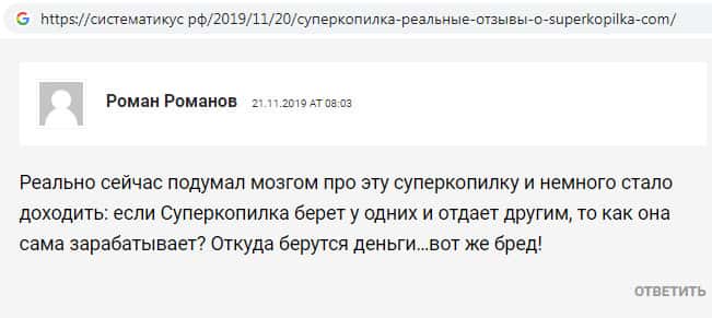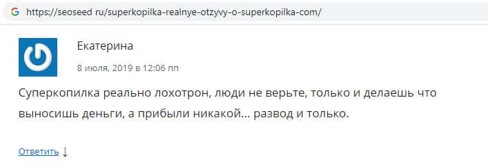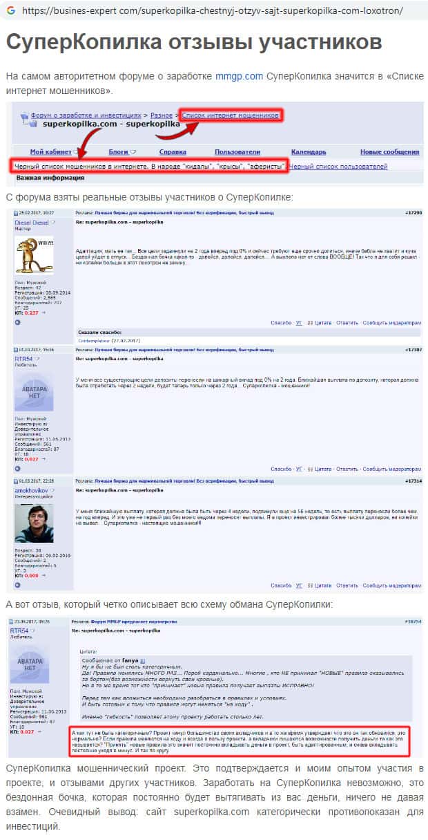 - Жулики SuperKopilka опубликовывают фейковые комментарии на форумах о заработке