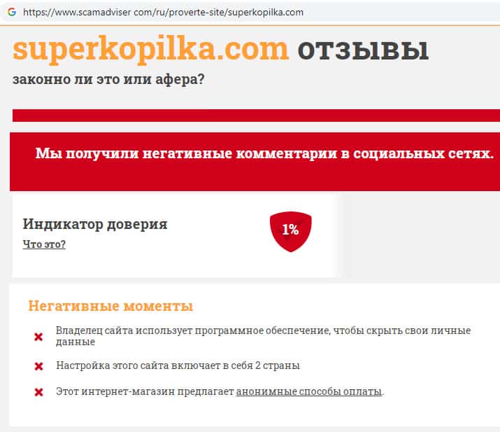 На веб-сайте трусторг ком найден отзыв о шулерах SuperKopilka, которые сами о себе сочиняют и опубликовывают псевдо-пользовательские комментарии. Учитесь на чужих ошибках и не регистрируйтесь на сайтах сомнительного происхождения вроде мошеннического интернет-сервиса Супер Копилка !!!