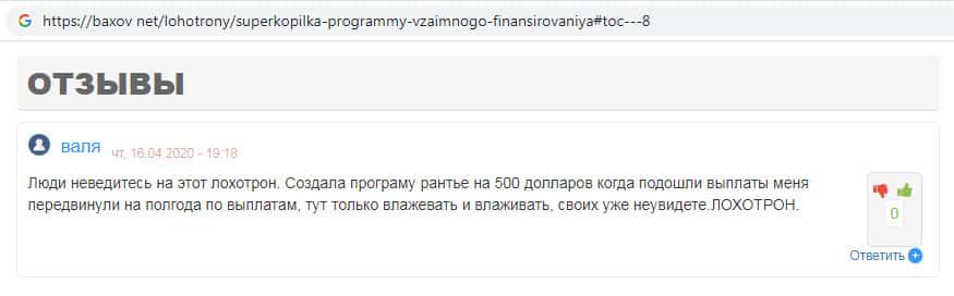 - Аферисты Супер Копилка опубликовывают лживые отзывы о своей компании хвалебного характера