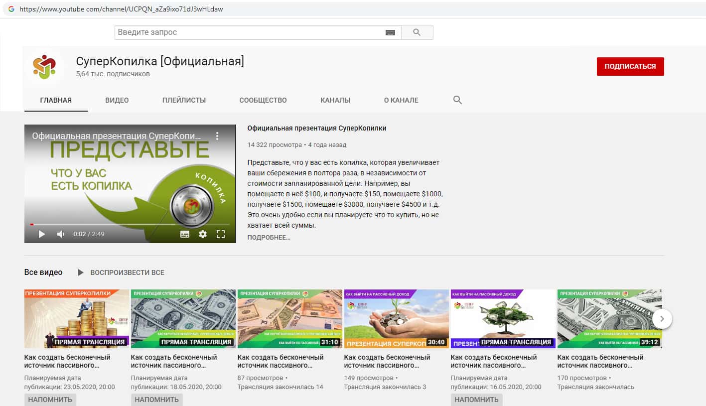 - Мошенники Супер Копилка считают свои видео на канале Ютуб полезными