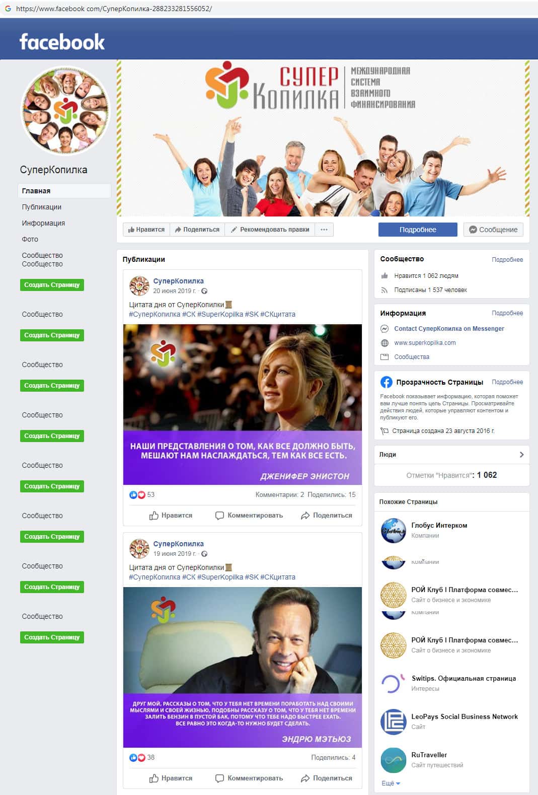 Жулики Супер Копилка зарегистрировались в социальной сети Facebook