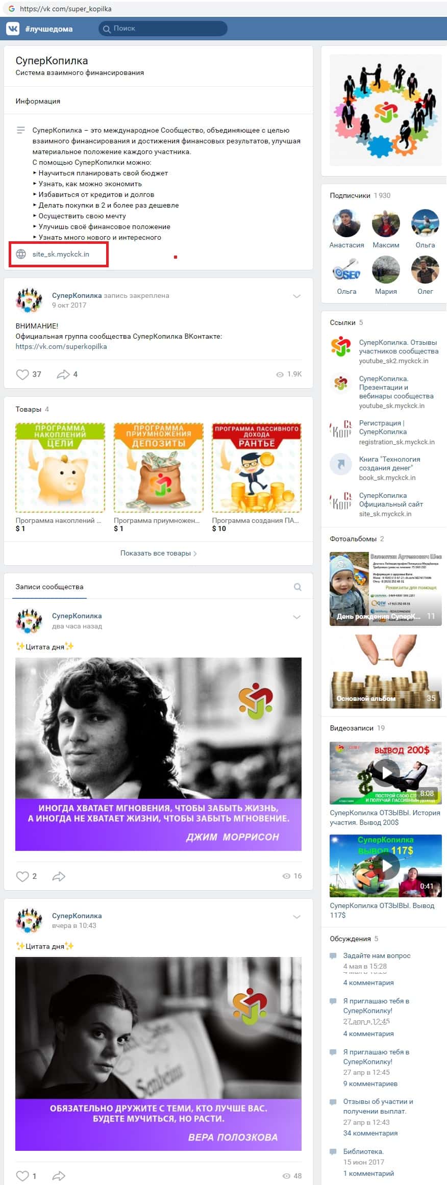 - У аферистов SuperKopilka имеется страница в российской социальной сети Вконтакте