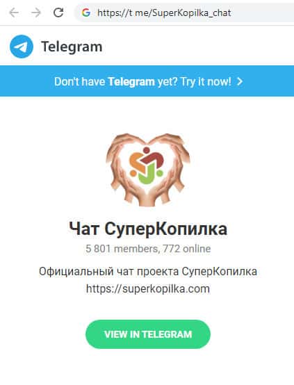 Так же у мошеннической организации Супер Копилка имеется аккаунт в Telegram, где они размещают очень много рекламы о своей конторе, но к сожалению только для тех пользователей, которые подписаны на их канал. Подписываясь здесь Вы оставляете все данные о своем контактном номере телефона.