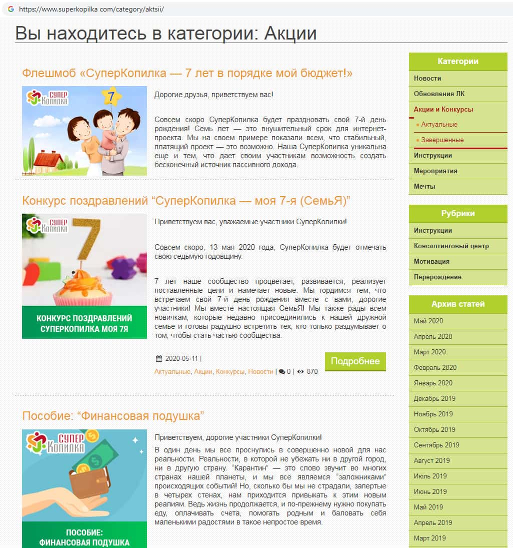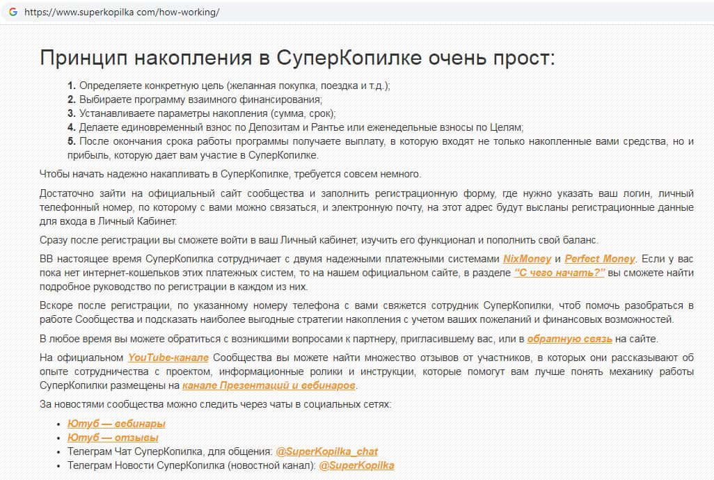 Здесь представители шараги SuperKopilka решили как можно эффективнее расхвалить свою компанию и опубликовали статьи, которые по своей сути являются рекламой данному проекту. Верить всему, что пишут о себе шулера Супер Копилка не рекомендуем по той причине, что все, что там написано - вранье !!!