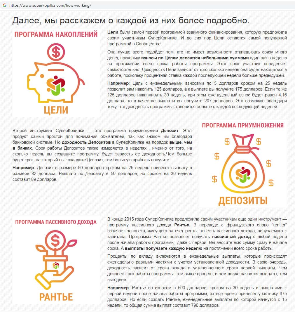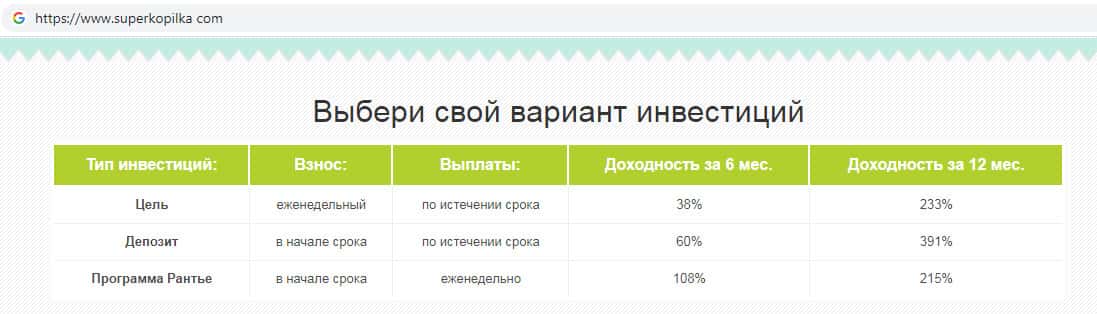 - Какие инвестиционные программы предлагают аферисты Супер Копилка пользователям своего сайта?