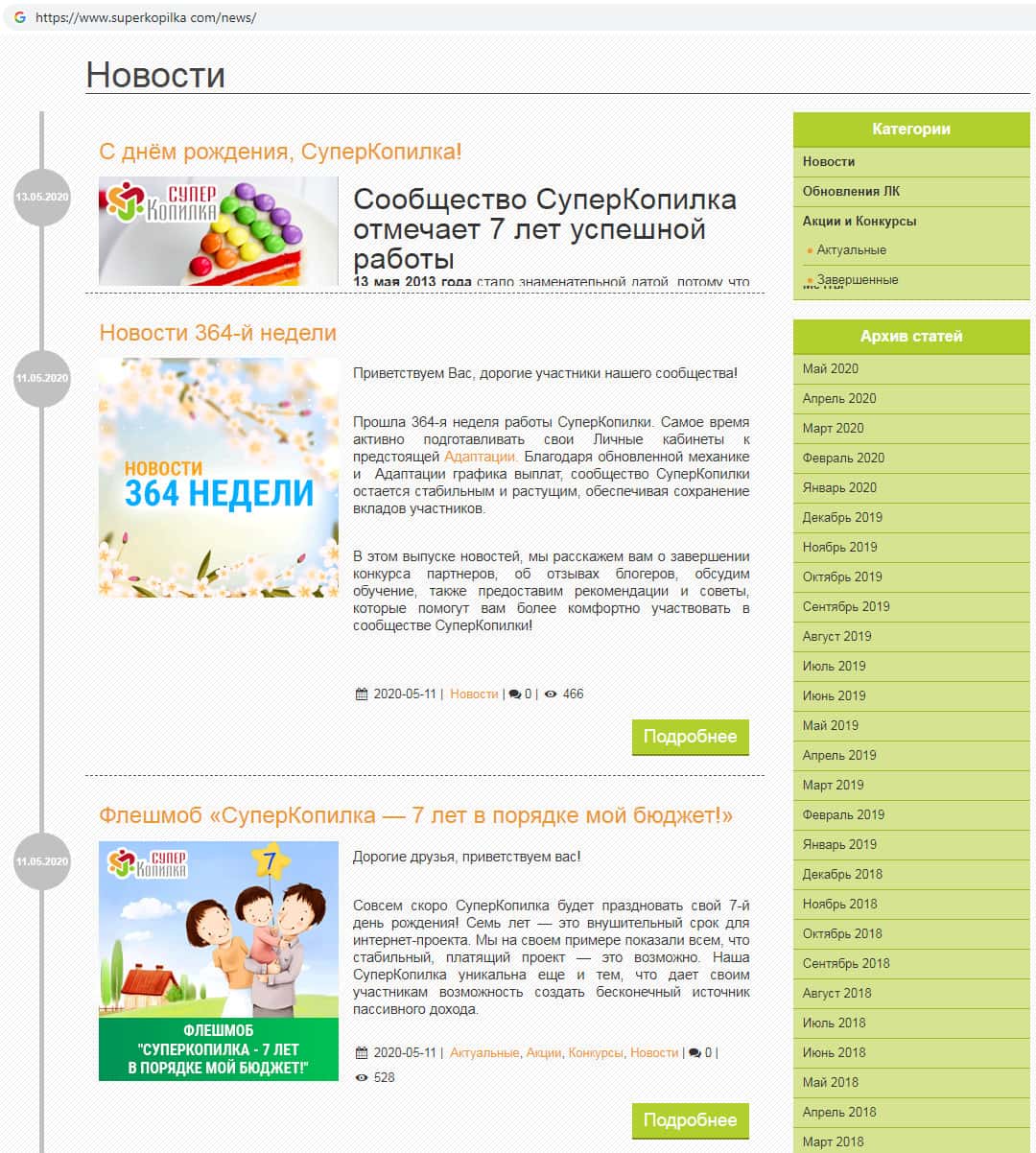 Новости на официальном сайте мошеннической организации Супер Копилка