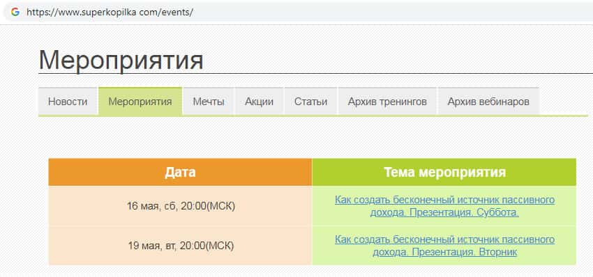Какие мероприятия проводит интернет-лохотрон Супер Копилка для пользователей своего сайта?