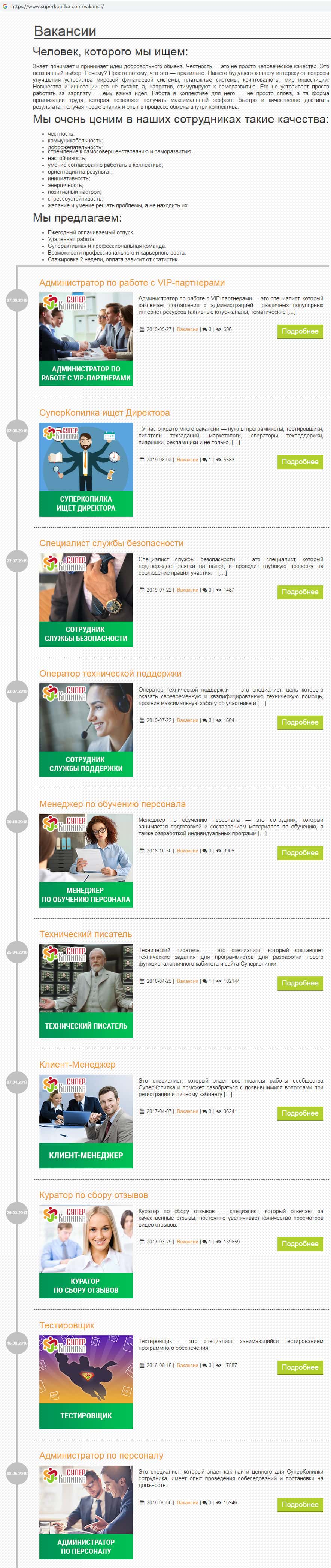 - Мошенники Супер Копилка заманивают пользователей на свой сайт, предлагая вакансии для работы в компании