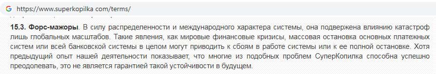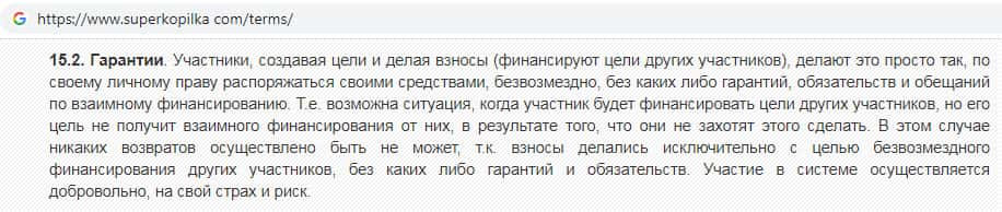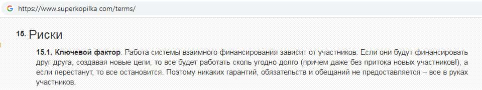 - Мошенники SuperKopilka полностью сняли с себя ответственность за потерю Ваших денежных средств