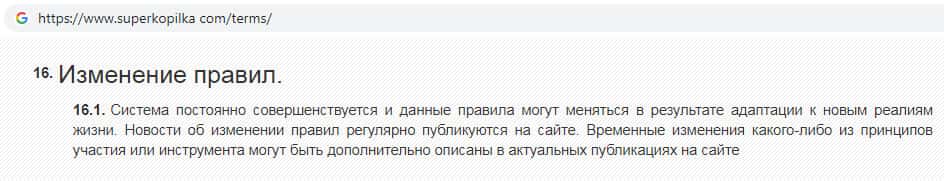 - Правила пользования сайтом жульнической конторы Супер Копилка