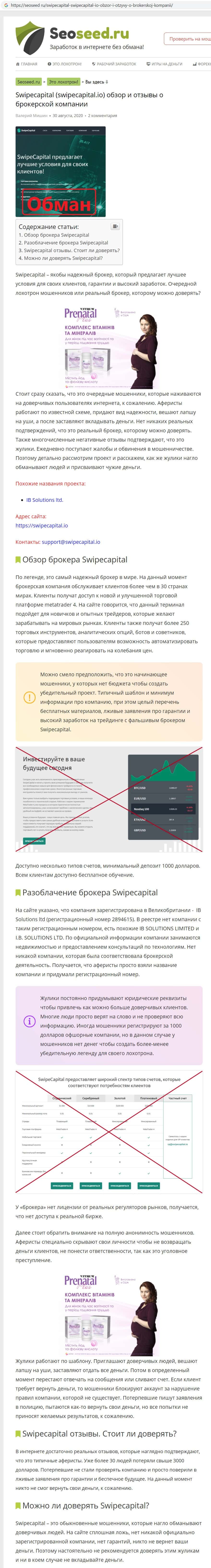 Интернет ресурс seoseed ru опубликовал статью о кидалах SwipeCapital io, в которой рассказал, что это обыкновенные мошенники, которые разводят наивных пользователей.