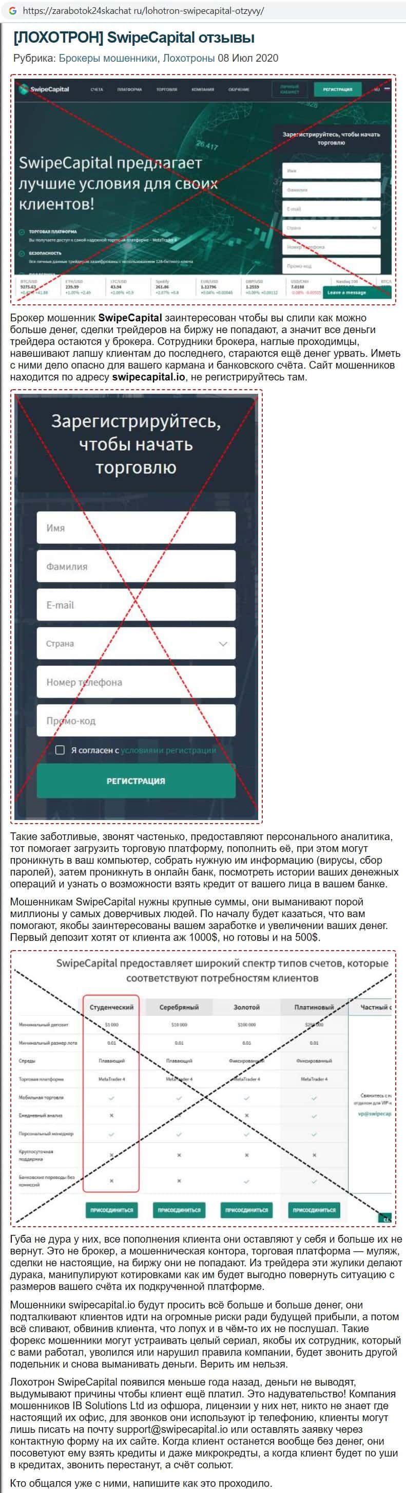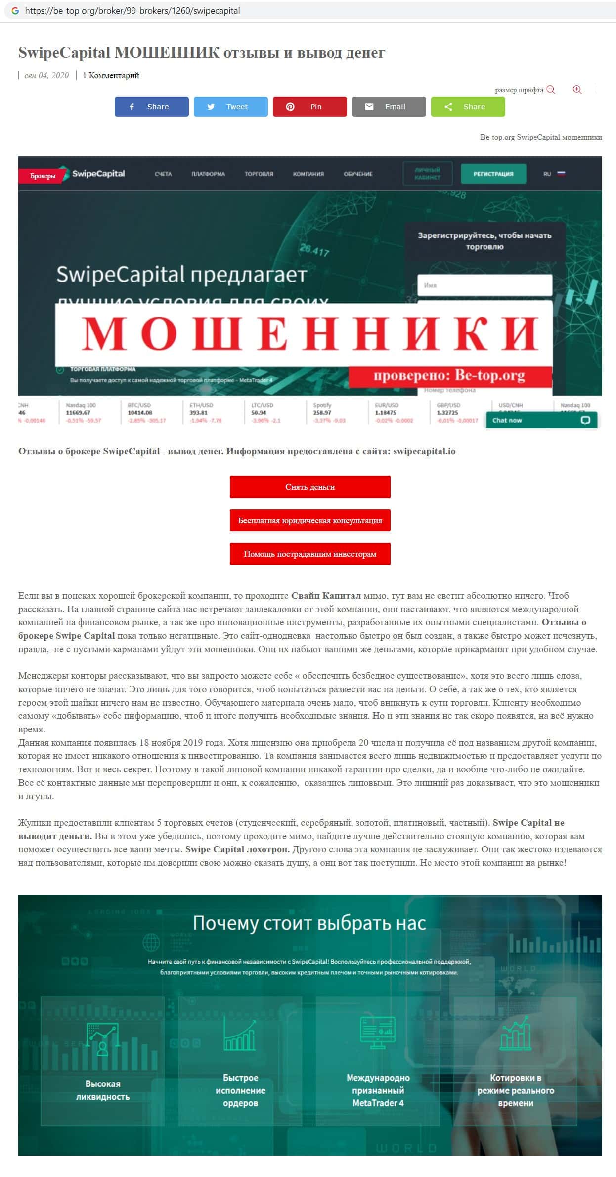 - Мнение интернет ресурсов о мошеннической организации SwipeCapital io
