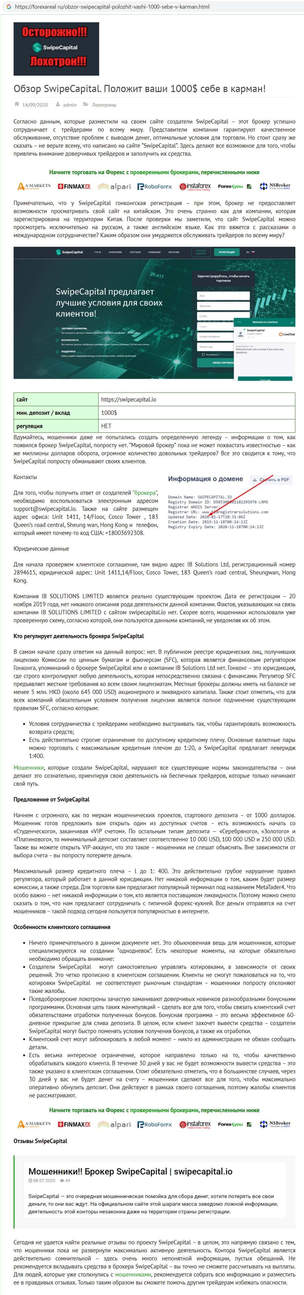 forexareal ru - отзывы о лохотроне SwipeCapital io
