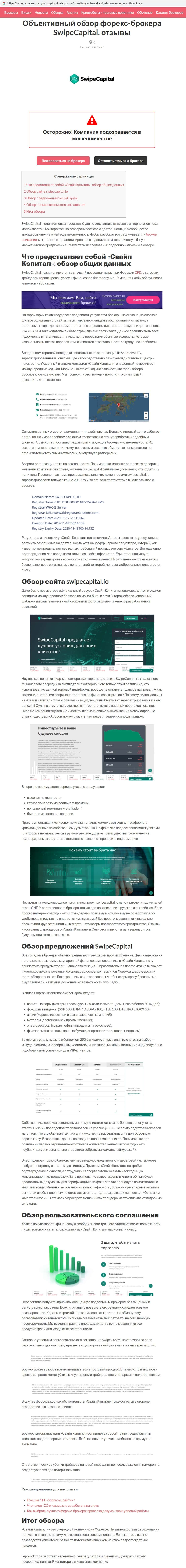 Мнение интернет ресурса о сайте псевдоброкера SwipeCapital io