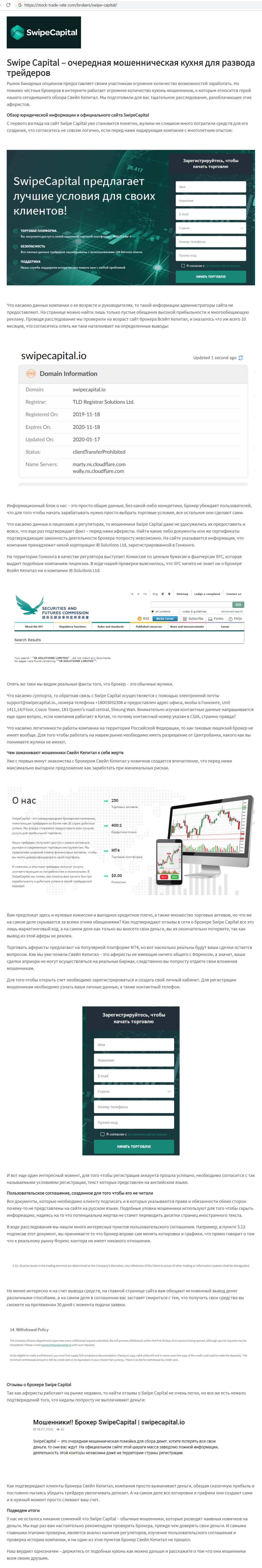 У сайта stock-trade-rate com не осталось никаких сомнений в том, что компания SwipeCapital io является обычным лохотроном, который нацелен на наивных интернет - пользователей.