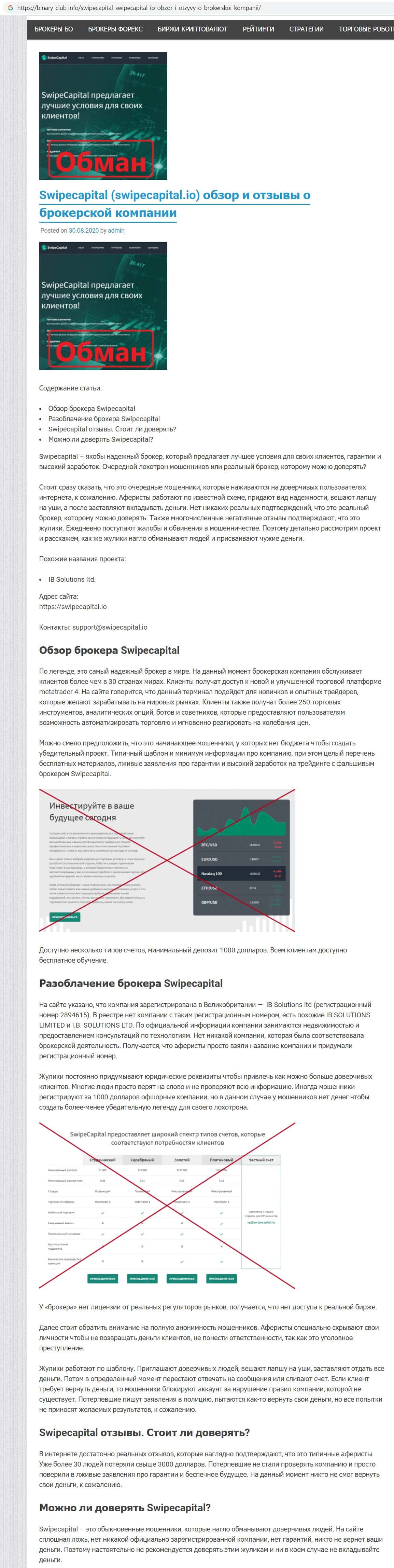 binary-club info - сайт с информацией о махинаторах SwipeCapital io