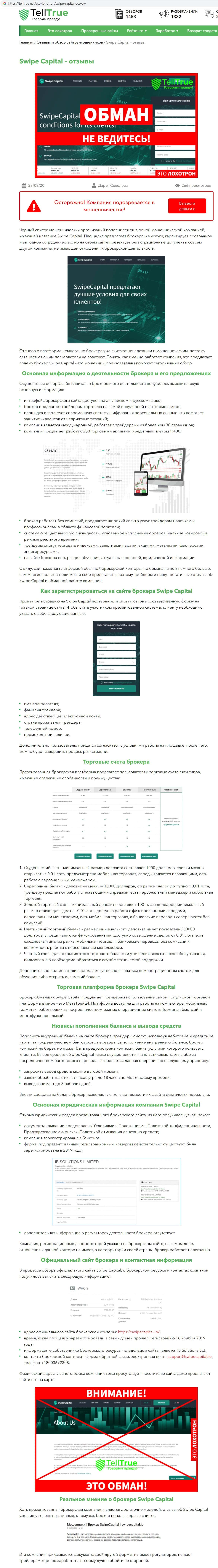 telltrue net - информация о проекте аферистов SwipeCapital io