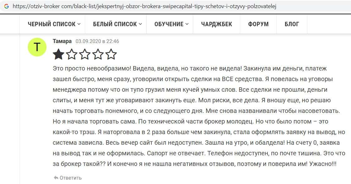 otziv-broker com - отзывы о лохотронщиках SwipeCapital io