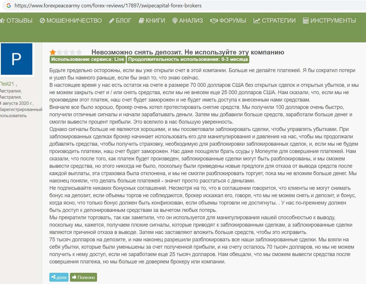 forexpeacearmy com - отзывы о недоконторе SwipeCapital io