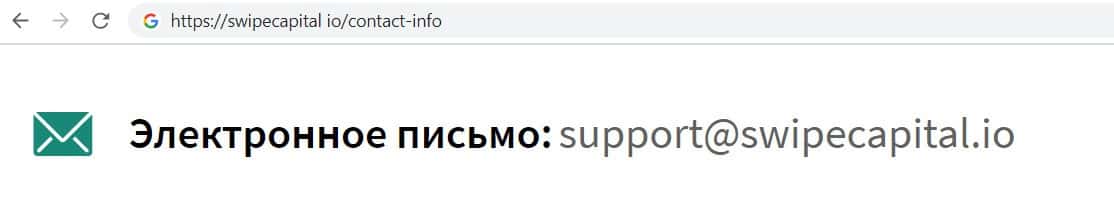 Так же мошенническая организация Свайп Капитал в качестве контактных данных указала адрес электронной почты, но вот только поддержка фирмы будет молчать. Почта мошенников: