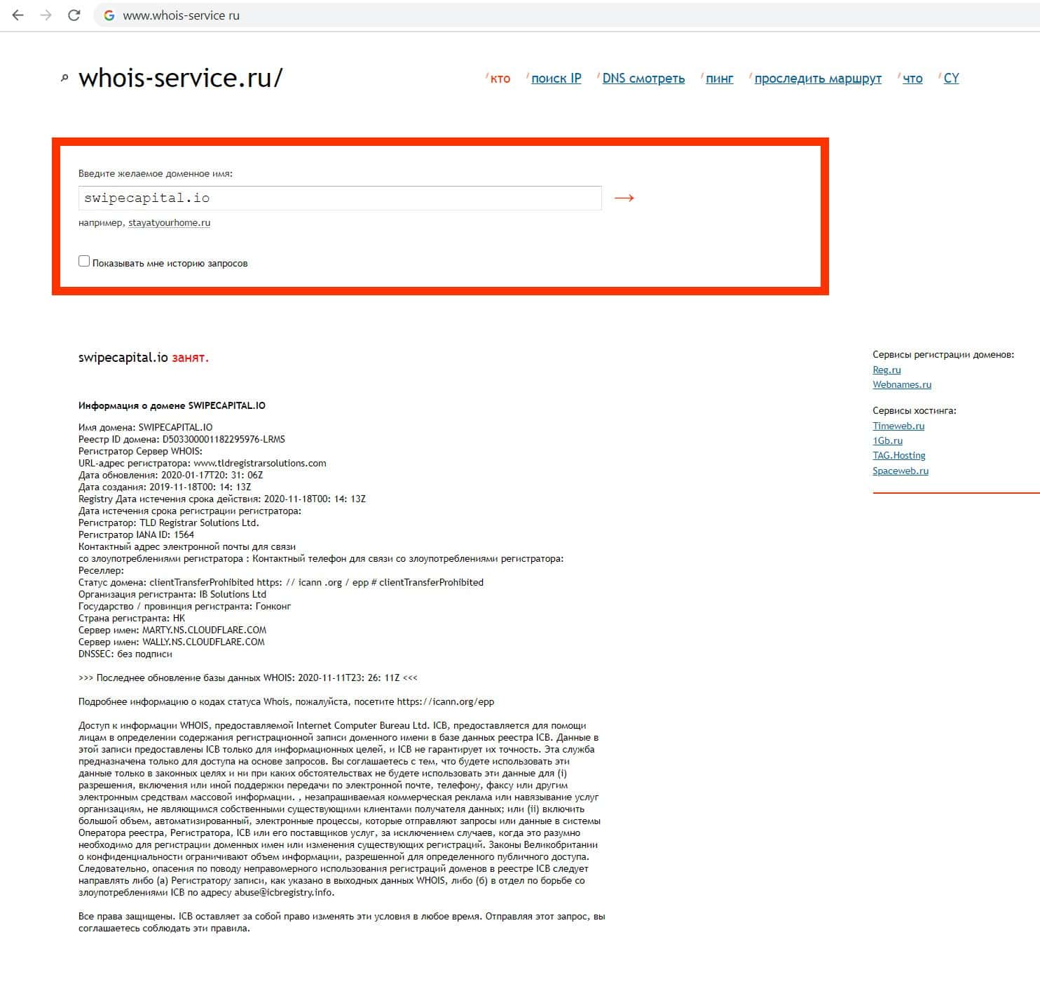 Кто является владельцем домена компании разводил Свайп Капитал?