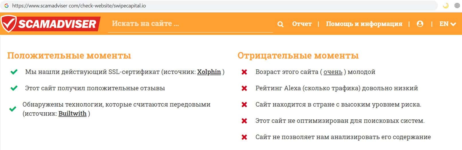 - Мнение интернет ресурса о сайте псевдоброкера SwipeCapital io