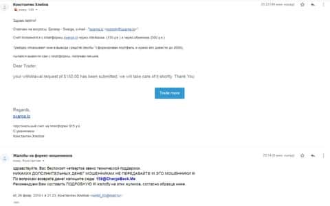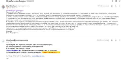 В этом случае клиент попался сразу в две конторы, которые провели схему развода. Человек думал, что если его контора Ct-Trade развела на 5000 долларов, то дилинговая кухня Сварга не кинет. Но и здесь произошел казус и шарлатаны этого гнусного брокера кинул его на 2000 долларов. Теперь, чтобы решить ситуацию, стоит обратиться в организацию ChargeBack.Me к профессионалам, которые там работают.
