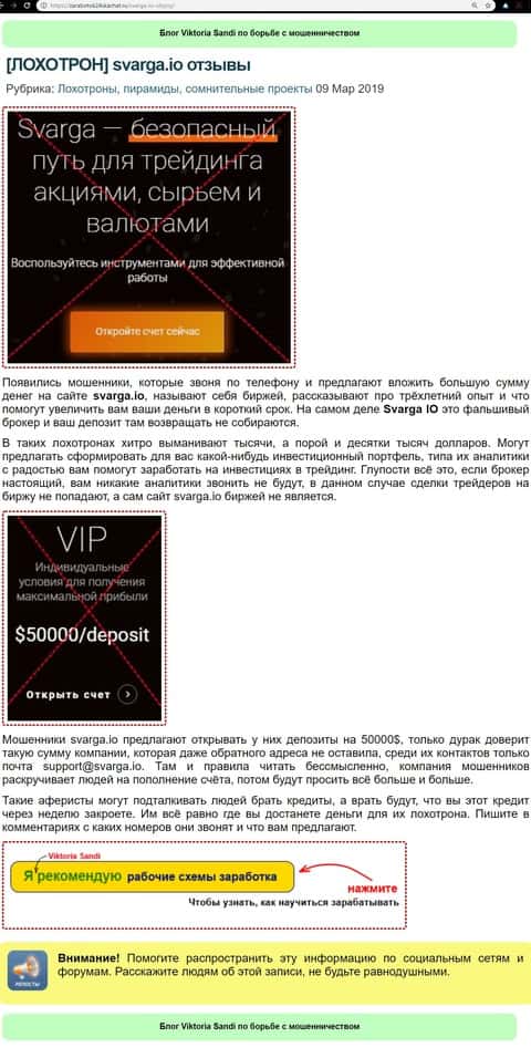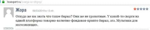 Блок негативных отзывов на форекс-лохотрон Svarga