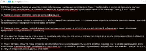 Жулье конторы Svarga придумало такой договор, при котором клиент станет бедным, как только подпишет его. Главным словом в данном документе является "ответственность", поэтому здесь дырок намного больше чем кажется. Начнем с того, что контора не несет ответственность за информацию, которую она предоставляет своим клиентам. То есть этот договор, условия торговли, правила и многое другое - все это чепуха и может быть еще изменена в любой момент. Стоит задуматься перед тем как вкладывать деньги в лохотрон Сварга.