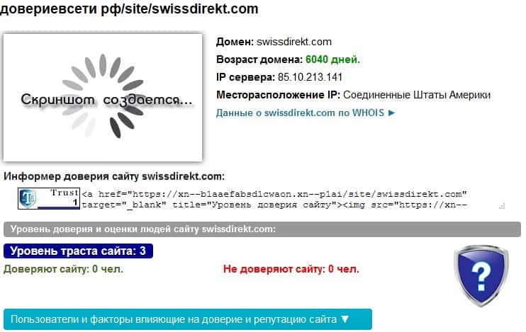 - Оценка работы мошенников Swiss Direkt на известном ресурсе