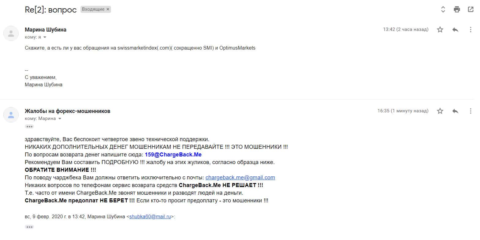 Очередная жалоба форекс игрока на аферные схемы сотрудников шараги Свисс Маркет Индекс