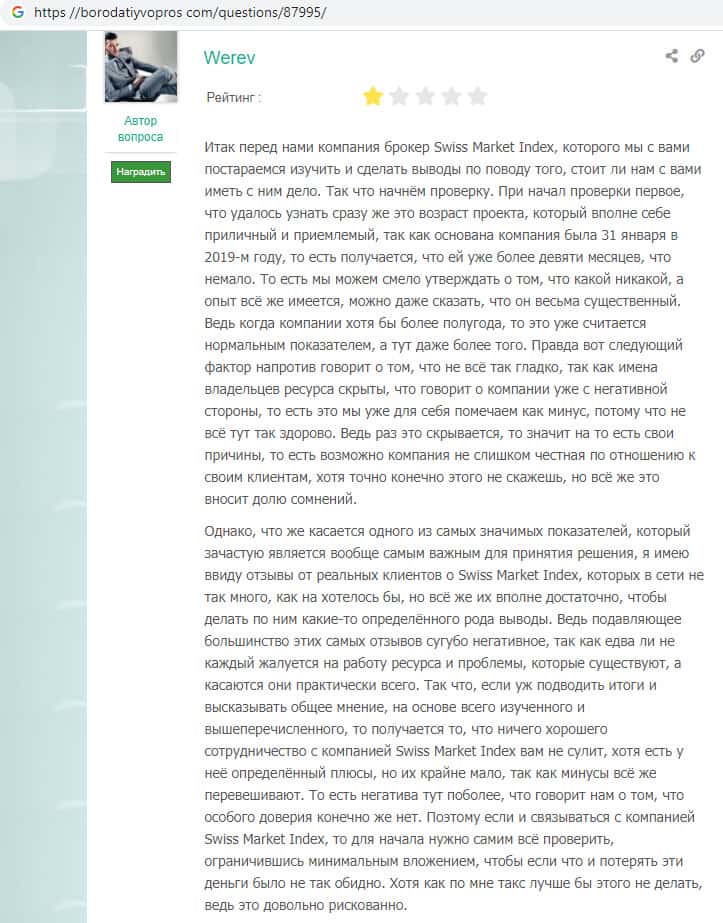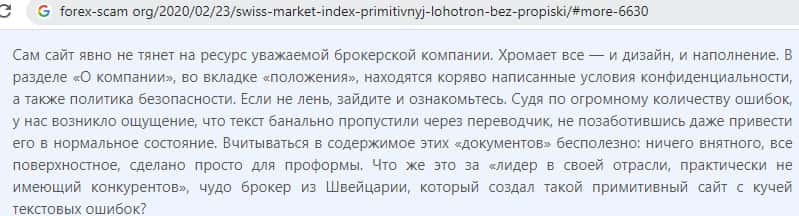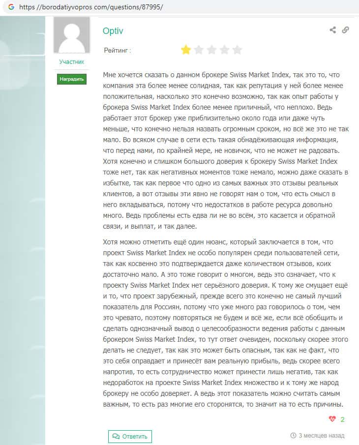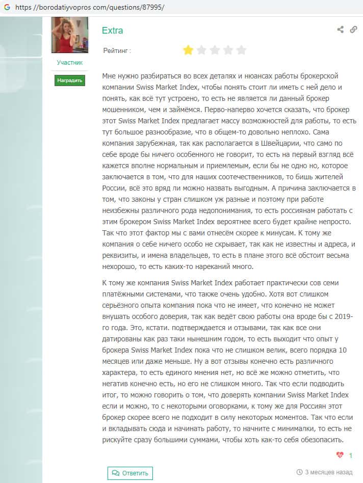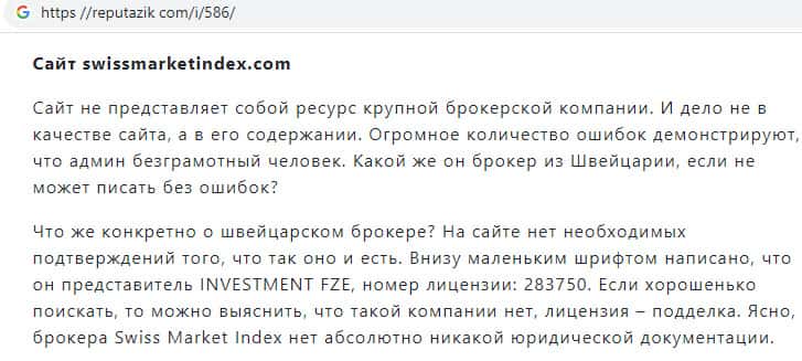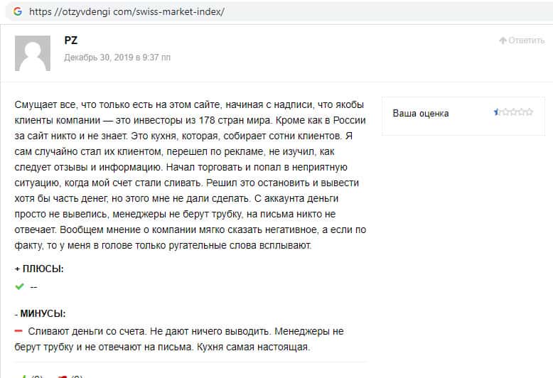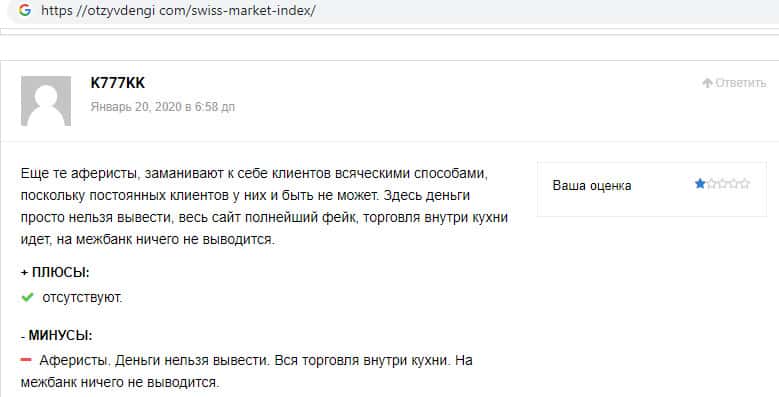 В сети содержится уйма негативных отзывов о платформе Свисс Маркет Индекс