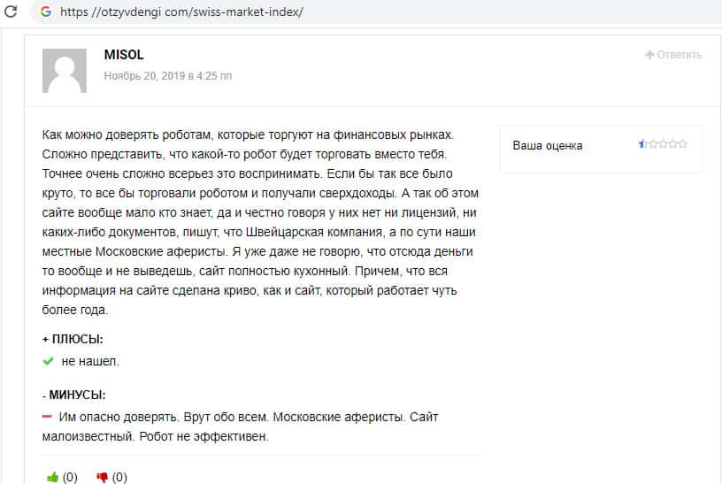 - В сети содержится уйма негативных отзывов о платформе Свисс Маркет Индекс