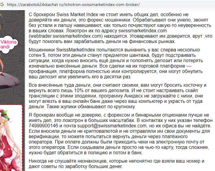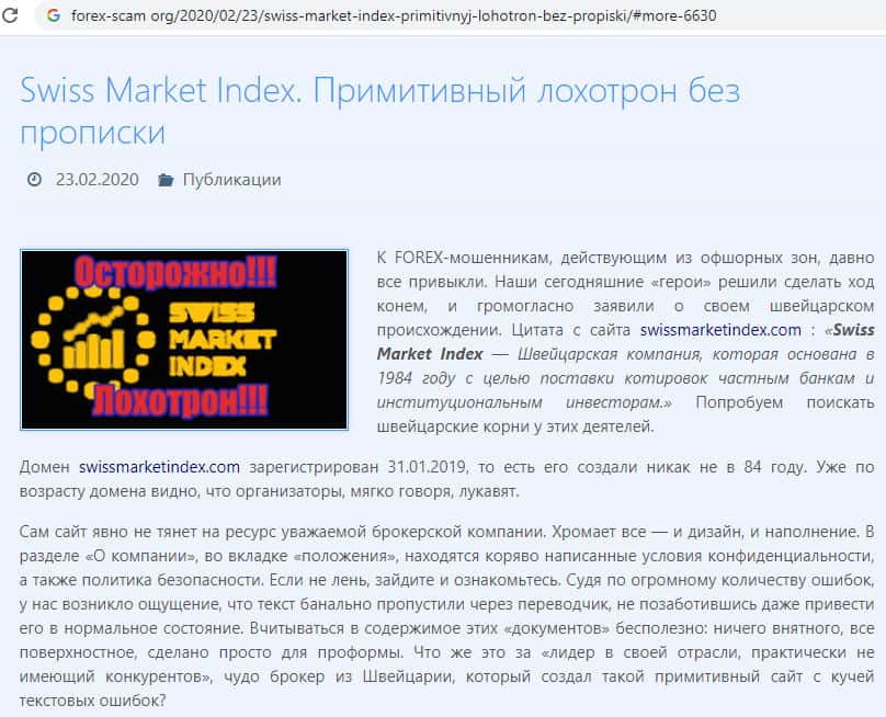 Авторитетный интернет-портал высказал свое негативное мнение о мошеннической конторе Свисс Маркет Индекс