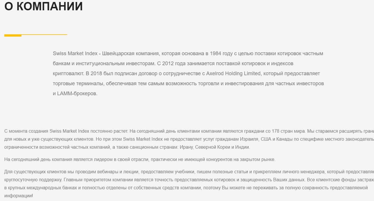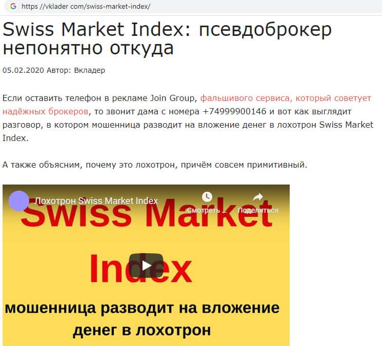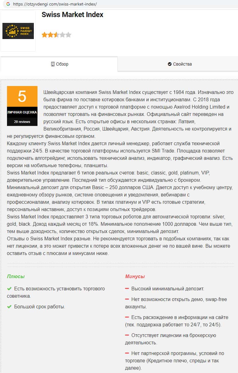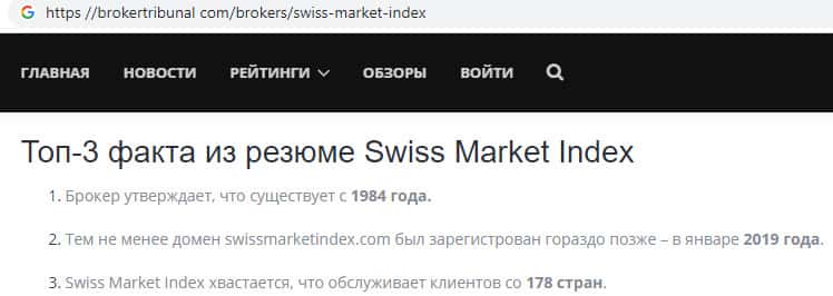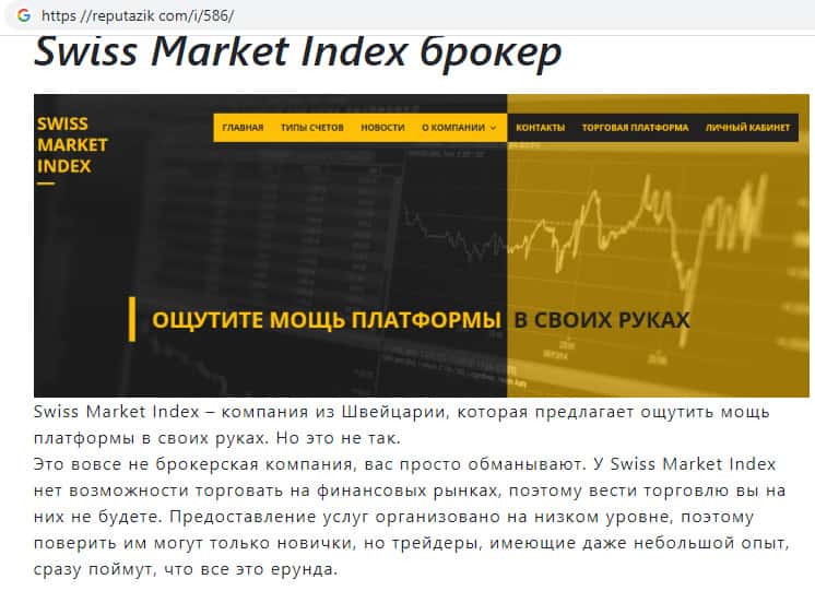 Краткий обзор веб-страницы ворья из брокерской организации SwissMarketIndex