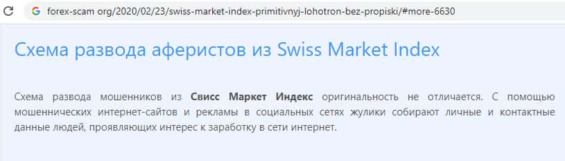 forex-scam org - ресурс, содержащий обзор на шарагу Свисс Маркет Индекс