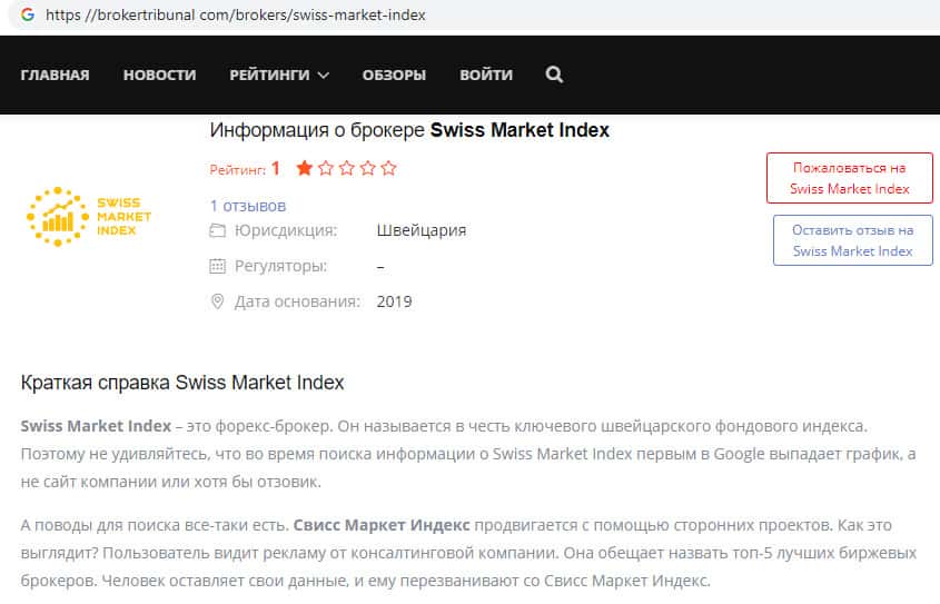brokertribunal com - веб-сайт с обзором ворюг SwissMarketIndex