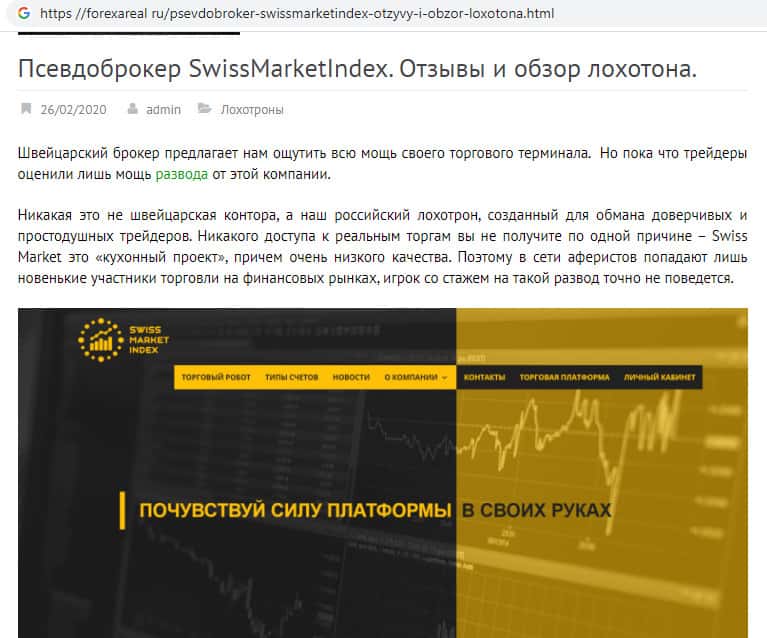 Раскрытие лохотрона SwissMarketIndex уважаемым веб-порталом forex-scam org