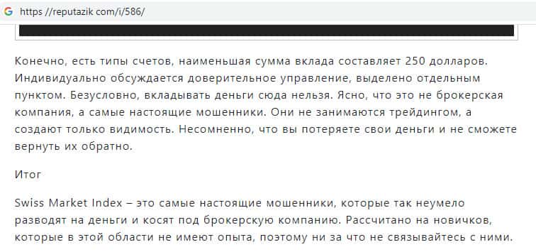 - Авторитетный интернет-портал высказал свое негативное мнение о мошеннической конторе Свисс Маркет Индекс